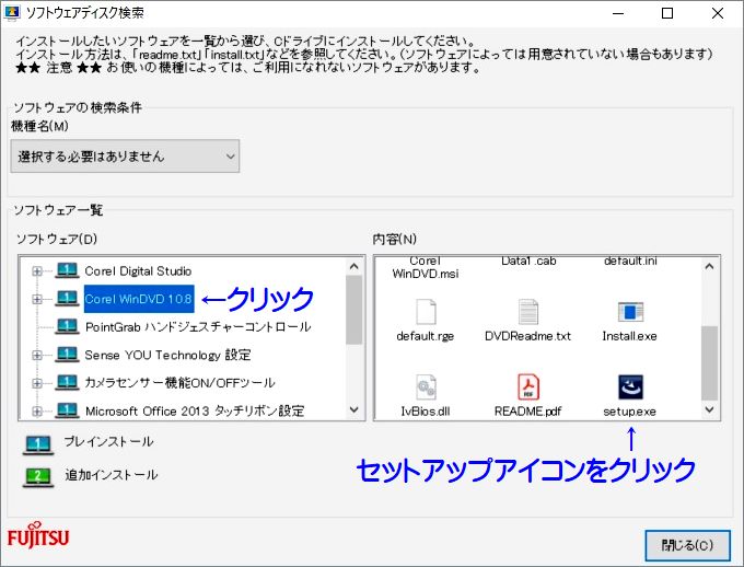 | 2.再インストールディスクをドライブにセットてソフトウェア一覧を開く。 |